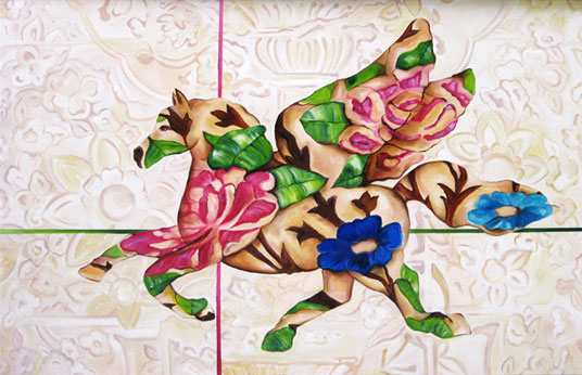 Solo exhibition in Tile of "Distant Memories"in Golestan Gallery. 16 works of Tara were shown in this Exhibition and more than 450 people attended in the opening ceremony.bQingdao international art Biennial